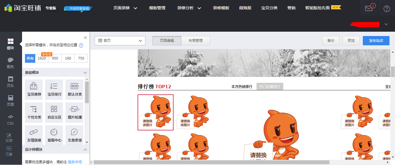 淘宝的店铺PC端自定义设置