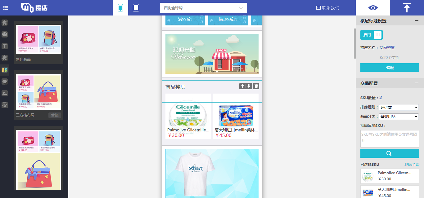 在移动互联网时代,页面动态配置功能升级,可以自定义的要素越来越多,在页面布局上也更为灵活。可以选择添加ICON、banner、商品等模块。