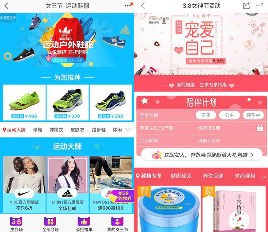淘宝、京东3.8节活动页