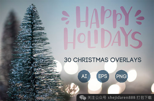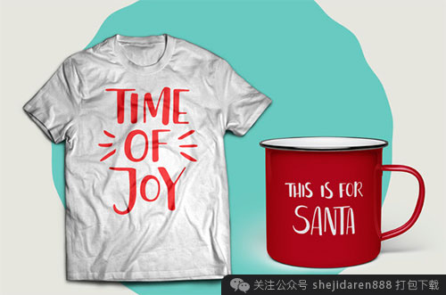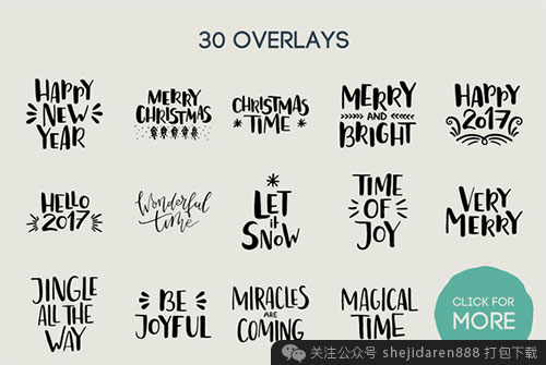 一共有30个具有圣诞气氛的文字图案素材,每组文字都是手工绘制,之于怎么用,可以参考下面的图像样板: