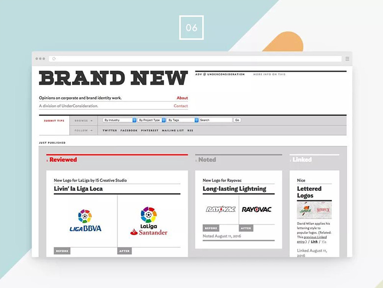 Brand New提供了很多品牌标志设计的理念。也提供了很多logo设计的趋势,简易以及案例展示。