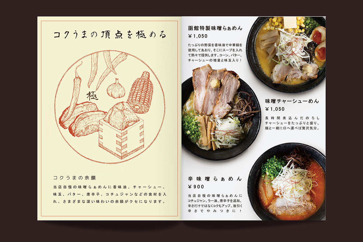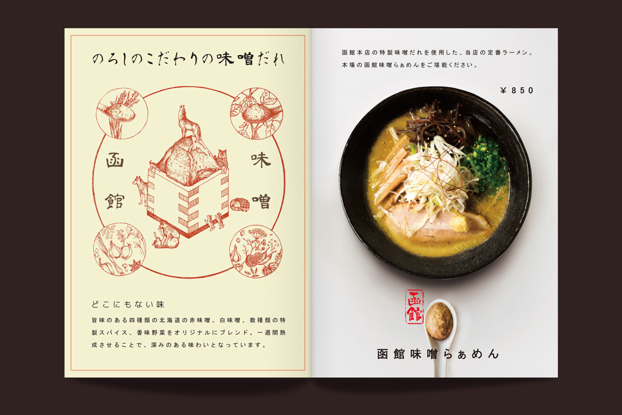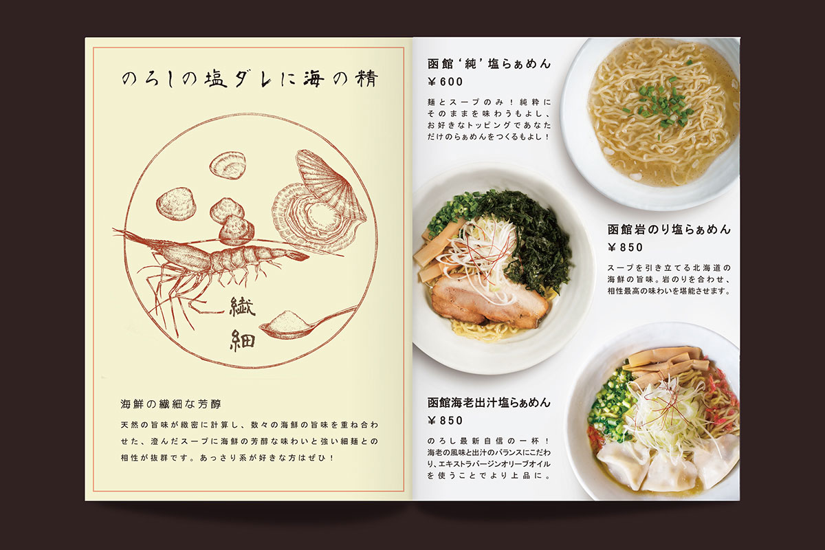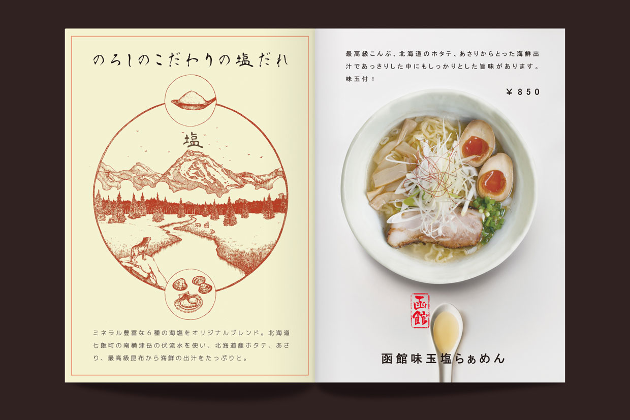 今日为大家分享来自的李政達(Lee Ching Tat)设计师制作的日式拉面餐厅的菜单,该菜单设计根据当地面馆习惯、文化为设计理念制作,餐厅名称叫「狼烟」,所以字体 LOGO 都有烟的元素在里面,每一页菜单都可以当作 一张精美的海报来欣赏,很不错的一个作品。