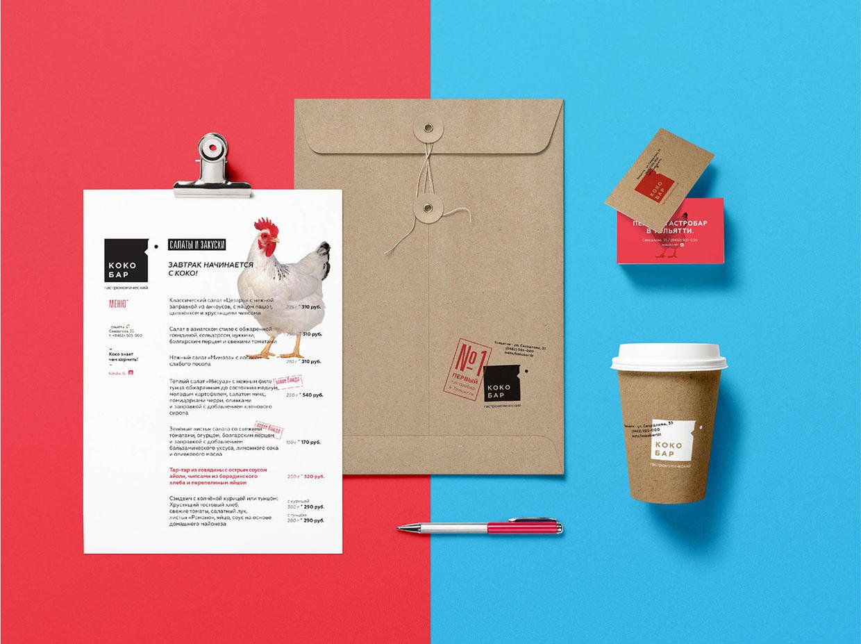 KOKOBAR 是一家俄罗斯餐馆,主营鸡肉食品。如果你正在为美食品牌做VI,那 KOKOBAR 一定能给你许多灵感。