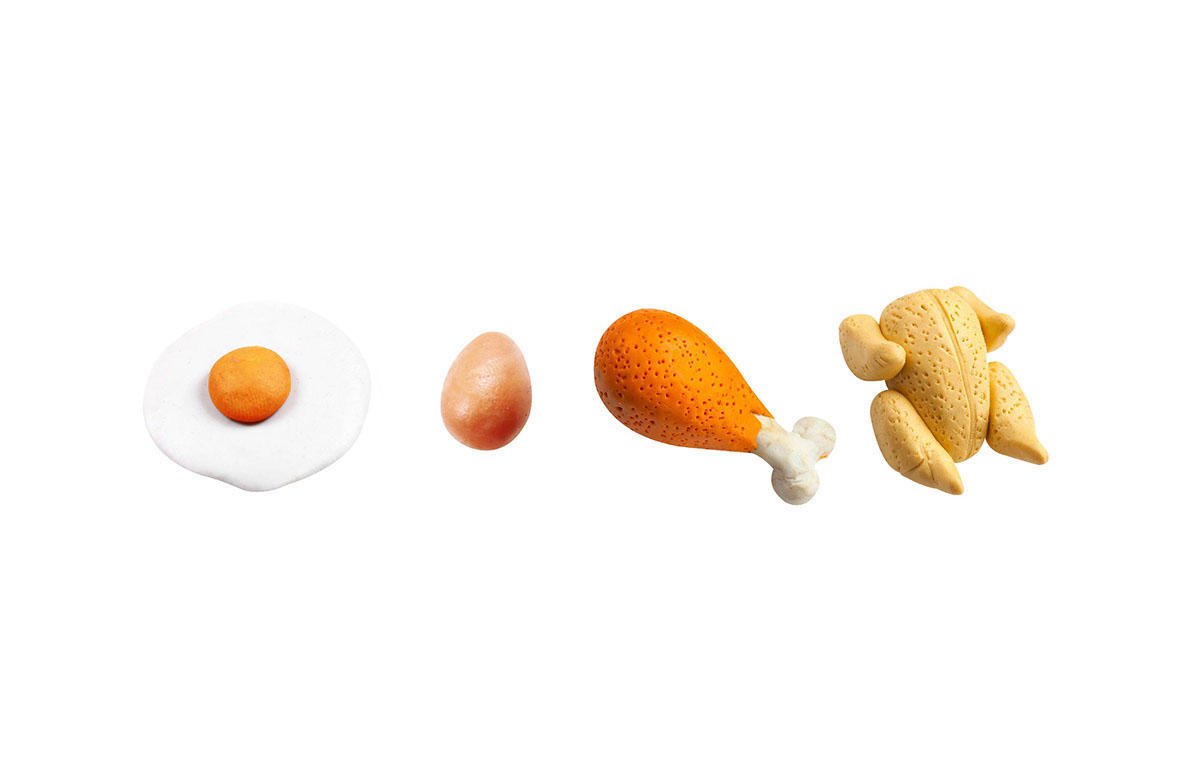 作为这里的主角,“鸡”的形象重复出现在任何一个地方,这种洗脑似的手法强调了这家餐厅的核心,那就是“鸡肉”。他的 logo 设计整体性很强,不同的“鸡”形象搭配反差强烈的红色和蓝色,应用在餐厅的每一个包装上。白色镂空的品牌标识运用了类似“黄金分割”的原理,同时包含了显性和隐性的图案(右边三角和圆 的组合就像一个简洁版的鸡头),风格简洁,整体视觉平衡。在这项设计中,“居中对齐”用得最多。