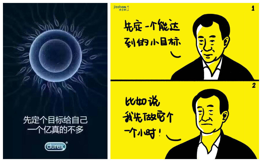 王健林在采访中的神回复:可以先定一个小目标,可谓是成为了经典,杜蕾斯继续保持一贯的老司机风格,打出了“一个亿真的不多”的文案,暗指杜蕾斯的防护效果令人放心。竞争对手杰士邦也结合产品的黑黄配色,做出了隐晦的文案宣传。但在巧妙上却稍逊一筹,过于明显和直接。