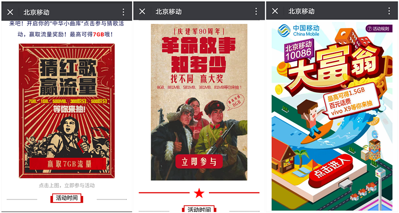 一种非常直接的引导分享的方法就是通过设置限制,引导用户分享才能解锁。如笔者因为长期缺流量,因此经常会关注北京移动公众号的送流量活动,活动多以游戏形式进行,但通常只有一次机会很难获得满意的结果,但是如果将该活动分享到朋友圈,便可以获得无限次数尝试。