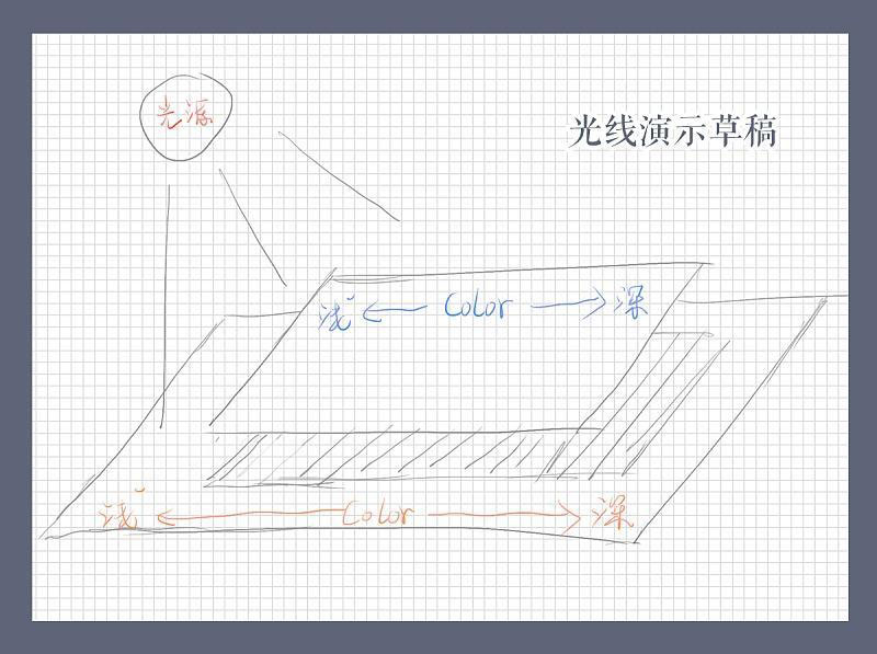 1.复制矩形作为投影层,颜色黑色,转为智能对象,加入高斯模糊效果。调整模糊度和透明度,移到适当位置。具体参数对照图中。(投影的位置根据假定光源位置而定,使其符合视觉原理(见下面很渣的草图)。转为智能对象是为了方便调整颜色和随时调整高斯模糊参数)。