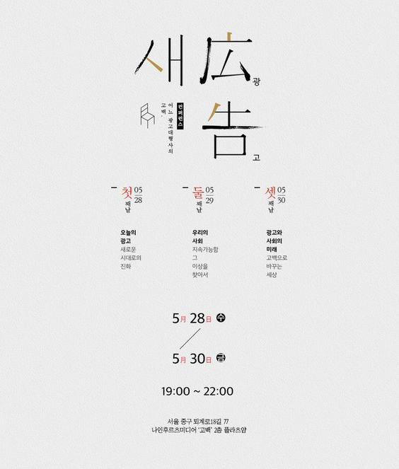 今天我们将以韩国文字为主体的海报设计案例,请同学们认真欣赏案例的设计细节,对文字排版或日后韩国相关的设计项目有所帮助,下们一起来欣赏吧,Enjoy!