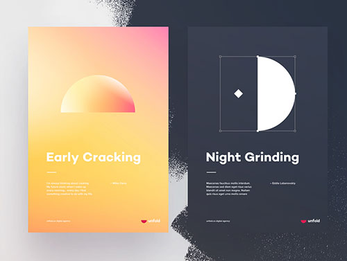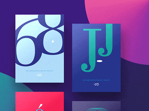 一组色彩创意海报设计,在不同的形状里使用渐变配色。