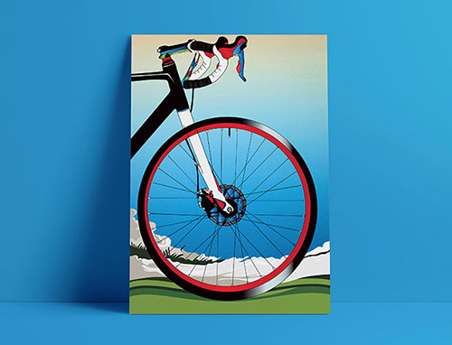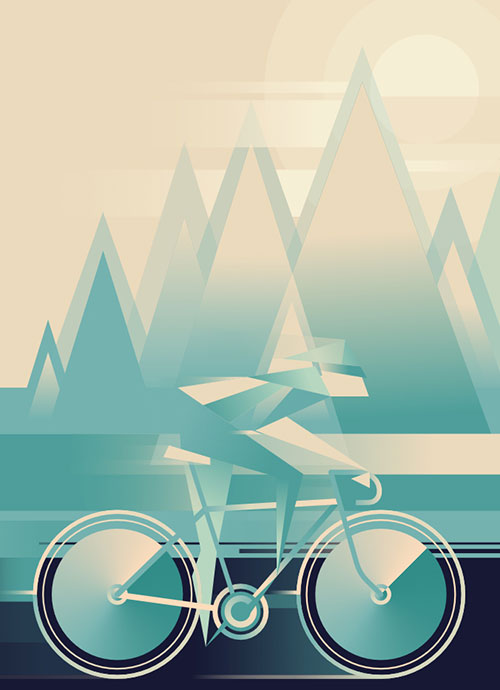 这张「单车」作品全是使用了复古渐变配色和几何图形组合设计。