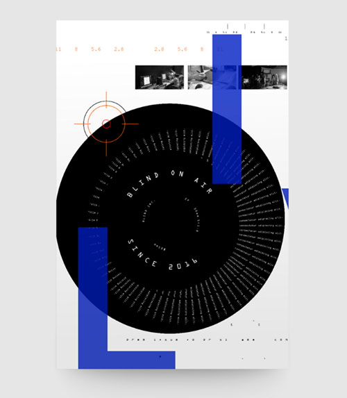 眼镜掉了,所以看东西会有点昏花感觉,那如何造出这种感觉?设计师使用了背景模糊、和文字重叠效果来营造出「昏花」感!