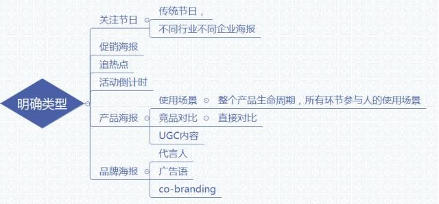 以下我是按照自己工作使用习惯分的类,按照海报设计的用途分成3个一级类别,分别是活动海报,产品海报,品牌海报,这三类有时也有很多交叉,灵活使用的。