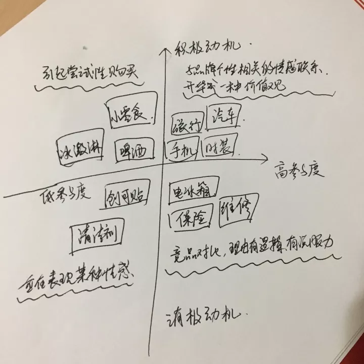 以此类推,第3象限的商品,则投入心智较少,动机也是消极的。