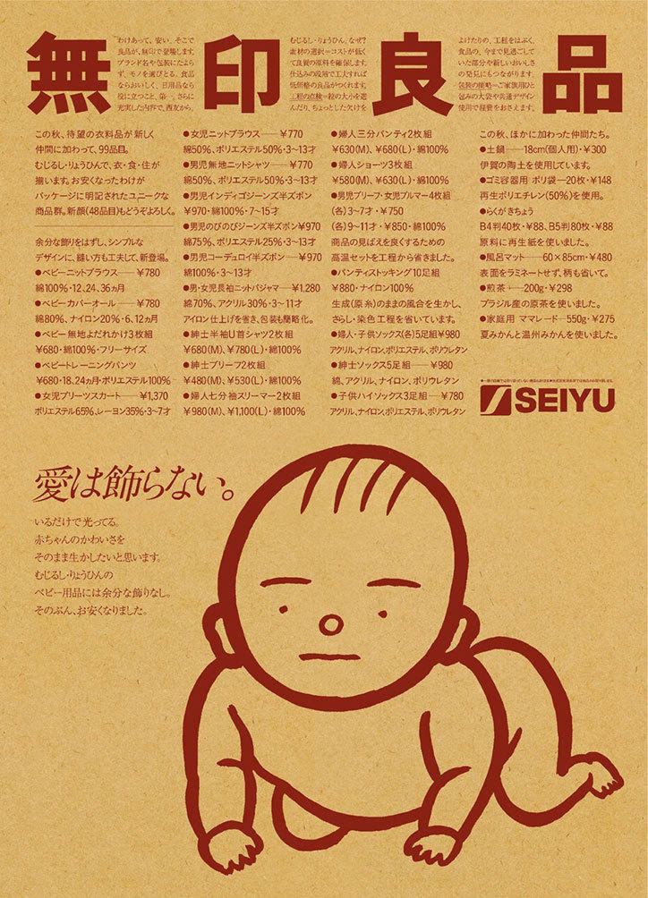 1981年,MUJI的一则婴儿用品广告:爱,不需要包装。