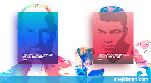 海报灵感来自一些值得尊敬的重要人物,海报中的人物头像使用多彩油漆风格绘制,配合一个简单的渐变和简约的文字排版,海报就此形成,简单却非常好看。