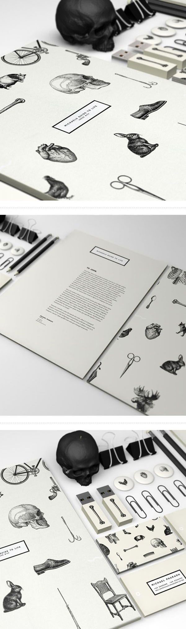 我们倾向于把图案想象成色彩丰富的几何图形,但是,我们可以看看法老的单色设计,而不是用优雅和细致的插图来形成一个品牌图案。神秘、美丽的元素和锐利的黑色和白色调色板的组合使这个品牌工具变得有效和引人注目。