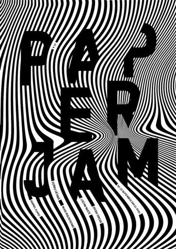 将一个静止的物体描述为具有动感的物体的作品,可能听起来有点奇怪,但这种设计,注意它是如何使用扭曲粗线创建运动和深度感的。通过将文字与图形线重叠,这件作品可以创造出吸引到设计中的文字的幻觉,从而使整件作品具有非常逼真的效果。