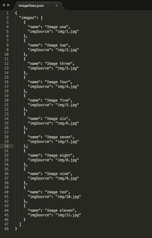 STEP2: 修改imageData.json文件,用于展示图像路径和顺序,如下图: