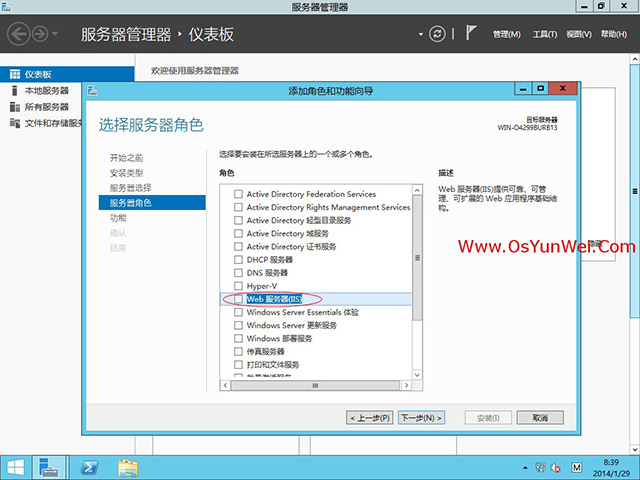 选择:Web服务器(IIS)