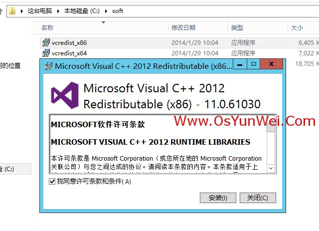 1、安装Visual C++ Redistributable for Visual Studio 2012 Update 4(x86)
