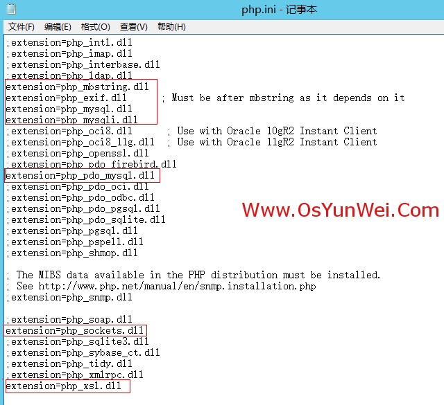 以下php扩展模块,根据需要选择开启,取消前面的分号为开始相应扩展模块