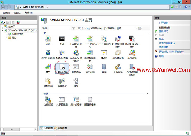 找到中间的IIS部分,打开“默认文档”