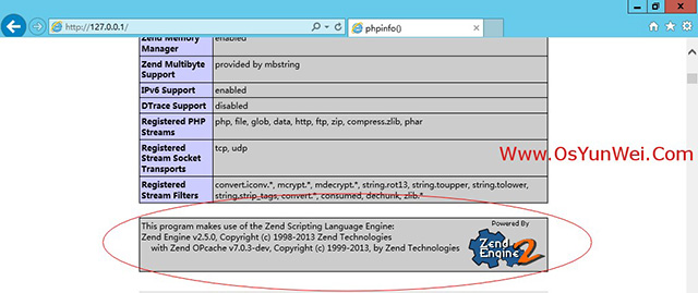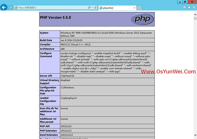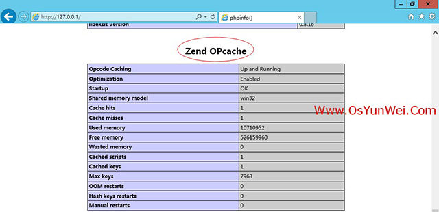 在浏览器里面打开http://127.0.0.1/,可以看到Zend OPcache配置选项