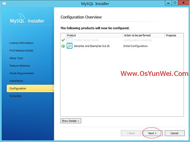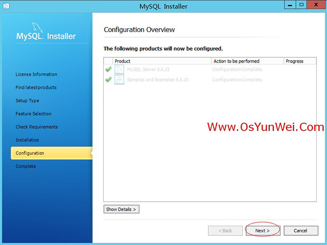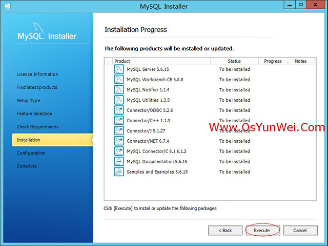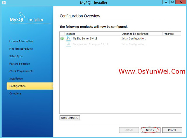 确保“MySQL Server 5.6.15”被选中,点Next(其他的组件可以选择安装)
