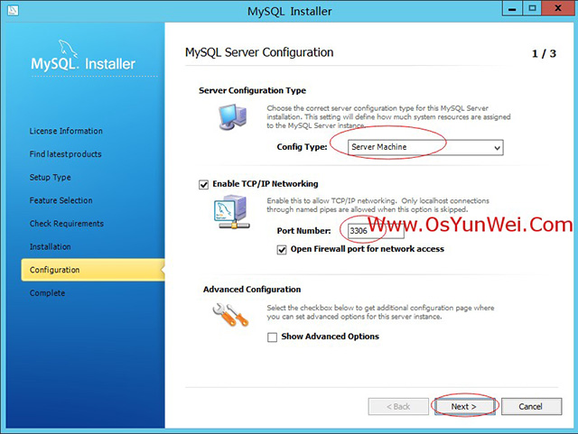 勾选“Enable TCP/IP Networking”(开启TCP网络端口)
