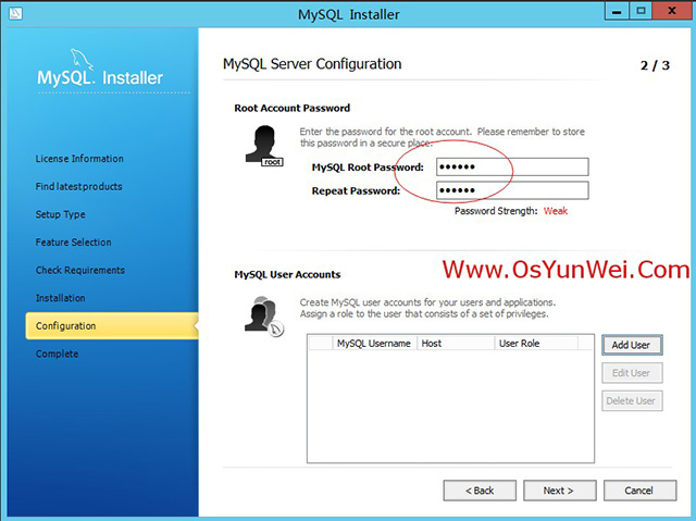 MySQL Root password:输入密码