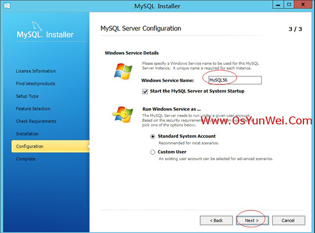 Windows Server Name(Windows服务名):MySQL56