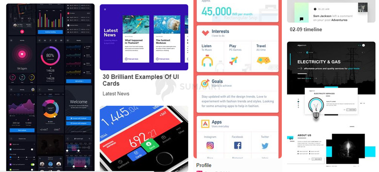 当你的UI中有大量不同类型的元素,诸如图片、文本、列表、CTA按钮等,你需要借助卡片来整合。