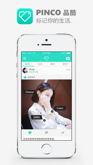 而时下正火的是第三波,“图形化标签”app,以 nice 品牌滤镜、YOHO Show 和 Pinco品酷 为代表。这类 app 产品特色都有一个共性:用户可在照片上打上浮动的文字标签,标注图中的品牌或其他信息。