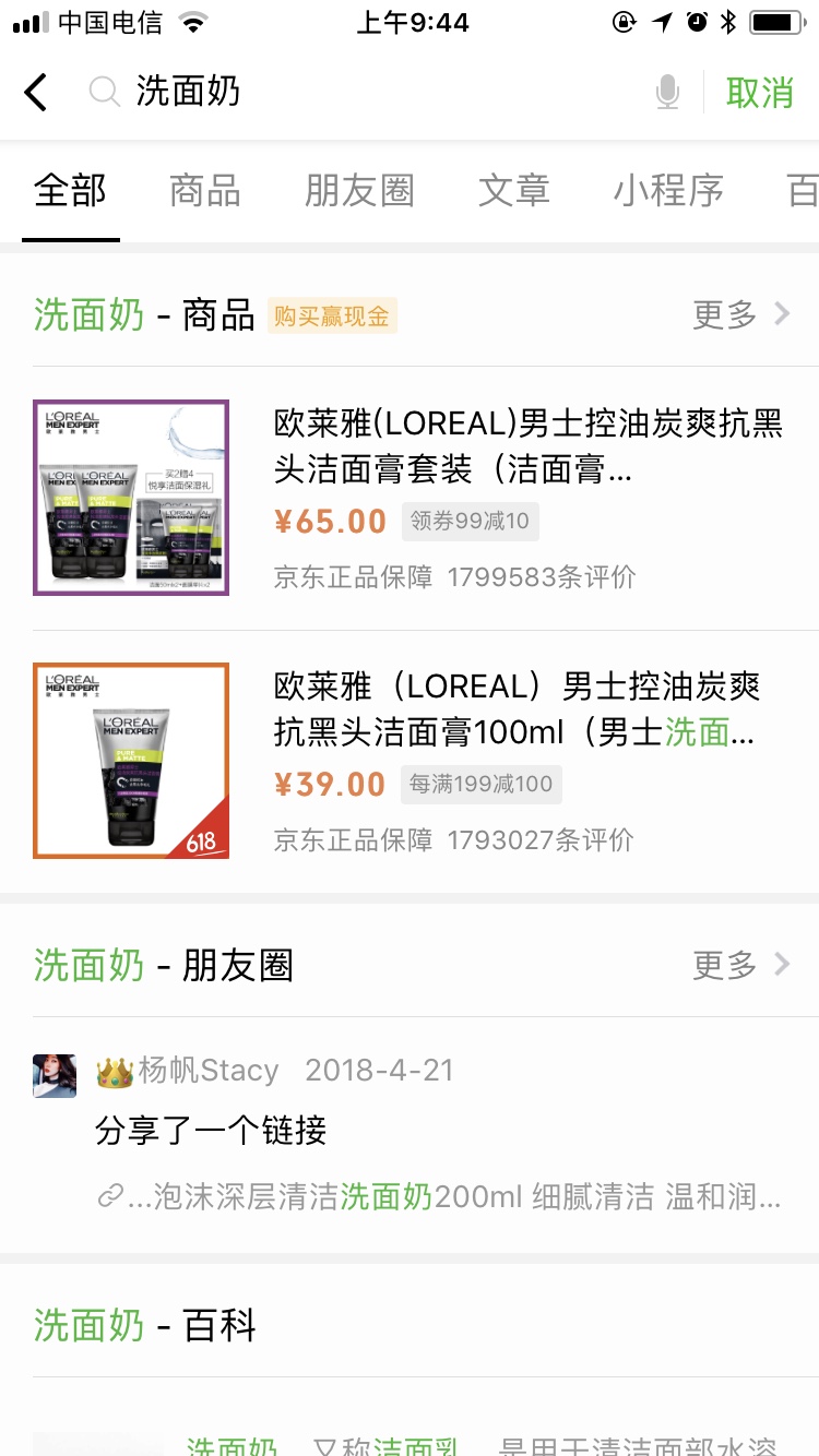 微信的用户心智就是社交通讯工具。是实现人与人的连接。后来随着公众号的出现,微信用户逐渐养成了用微信看内容的习惯,实现了人与内容的连接。在这种习惯和心智下,用户在微信里使用搜索功能的目的和预期都是围绕人和内容展开,而不是商品。