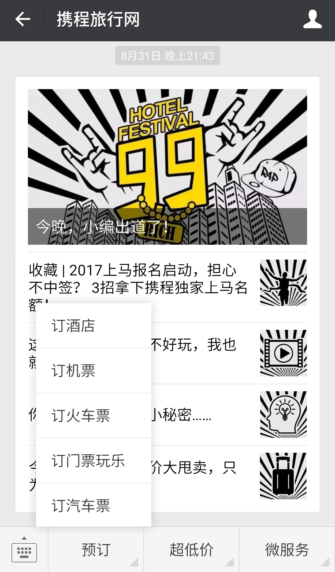 APP可以分享对应的小程序卡片到微信,点开后则会进入小程序。如从携程app点击“好友帮抢票”分享到微信,好友点击卡片后便会跳转至帮好友加速抢票的小程序页面。