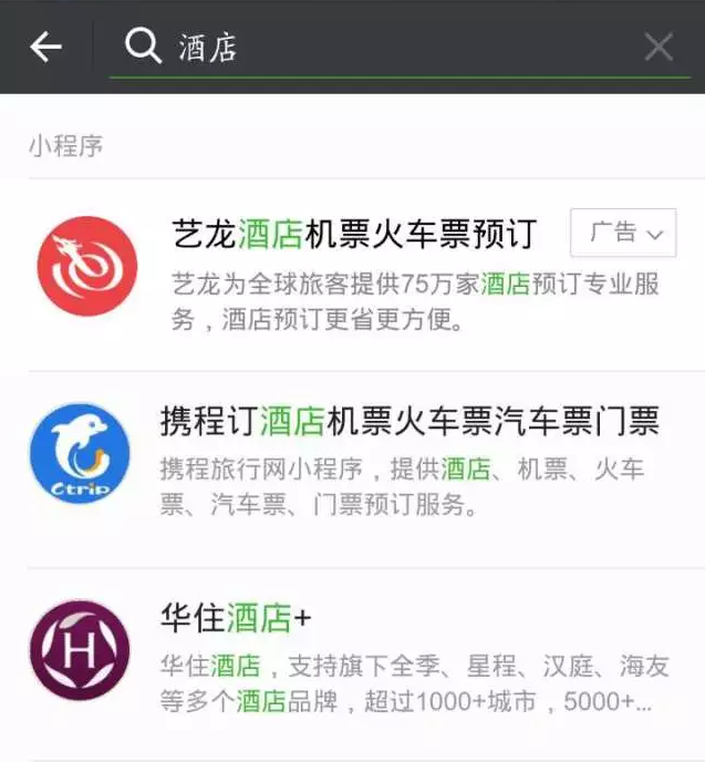 很多人不禁要对此举的意义发问:以微信的算法而出的搜索结果,岂不是严重遏制了新生小程序的后来者居上?这样即使定义了关键词,对推广而言并没有实质性的意义?微信官方自然也想到了与之相辅相成的策略,我们甚至可以认为后来的这步棋才是微信的本来目的。那就是于6月中旬首次出现于人们视野中的「搜索关键词广告」