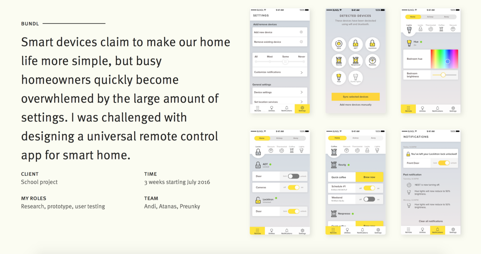 如果你不是视觉设计师,还是尽量不要沉迷于视觉化的内容展现。作品集不是要展示你惊人的视觉设计技巧,而是要呈现你在UX和产品设计上的能力,你的角色是UX设计师,你是为了解决问题、提出方案而存在的。