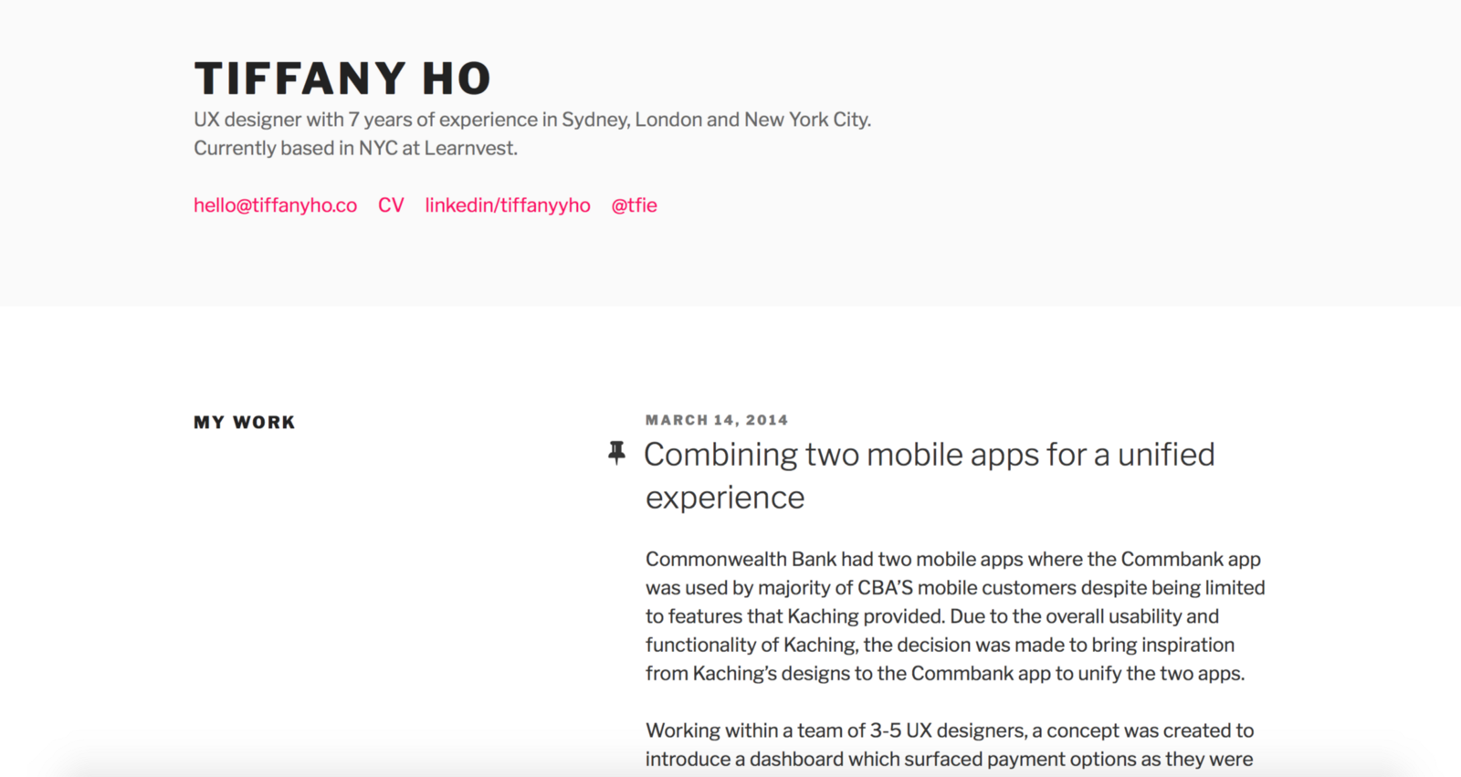 将你最令人印象深刻的设计项目展示出来,而不是按照时间线来整理内容。尤其是当你经验邮箱,并且尝试获得你的第一项UX相关的工作的时候。同时请记住,你的作品集是要展示你过去的工作,同时凸显你未来的方向。确保你的作品集能够体现出你所试图寻找的工作类型,而非其他。