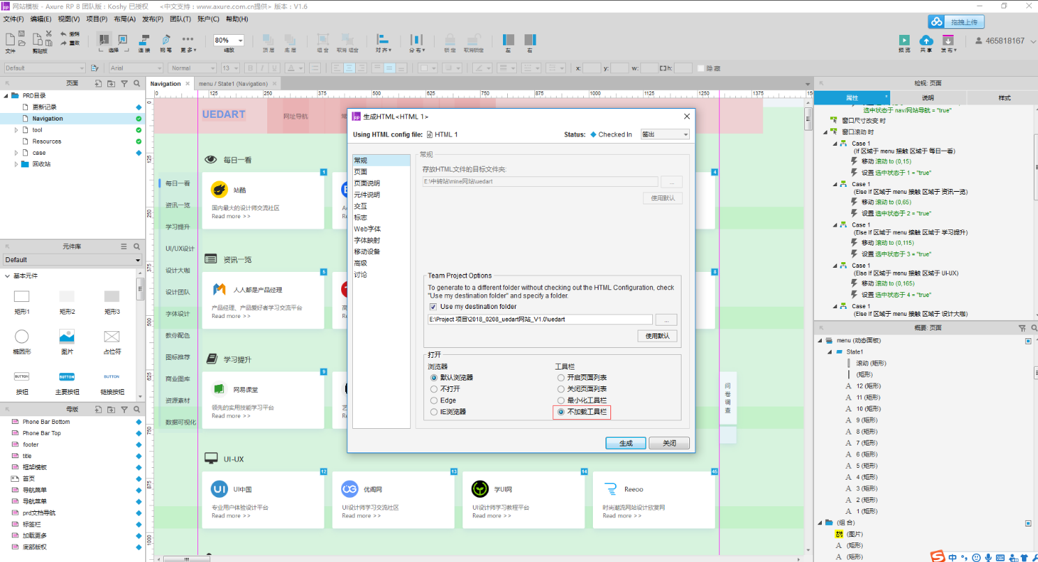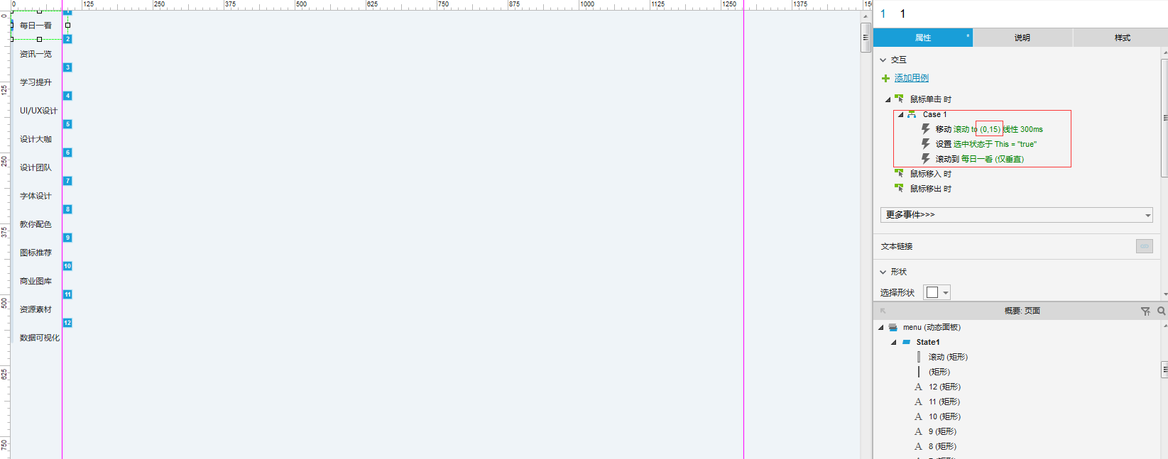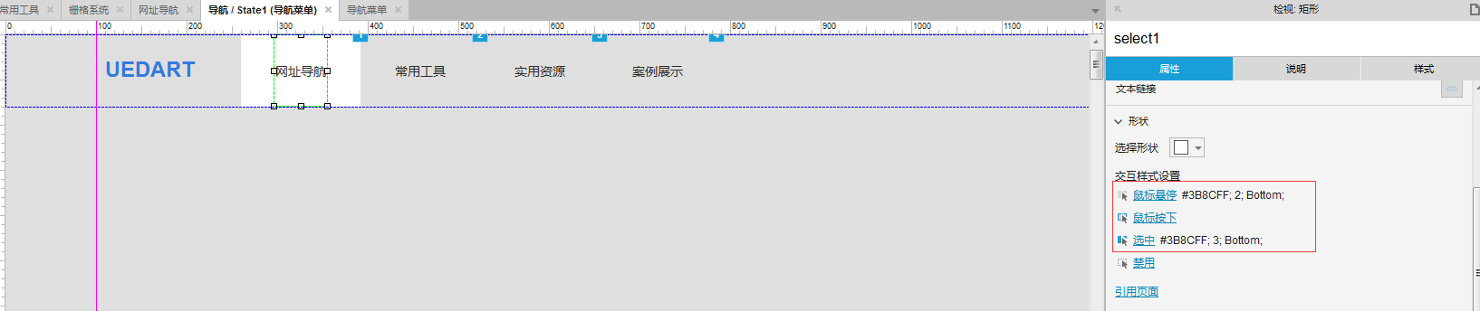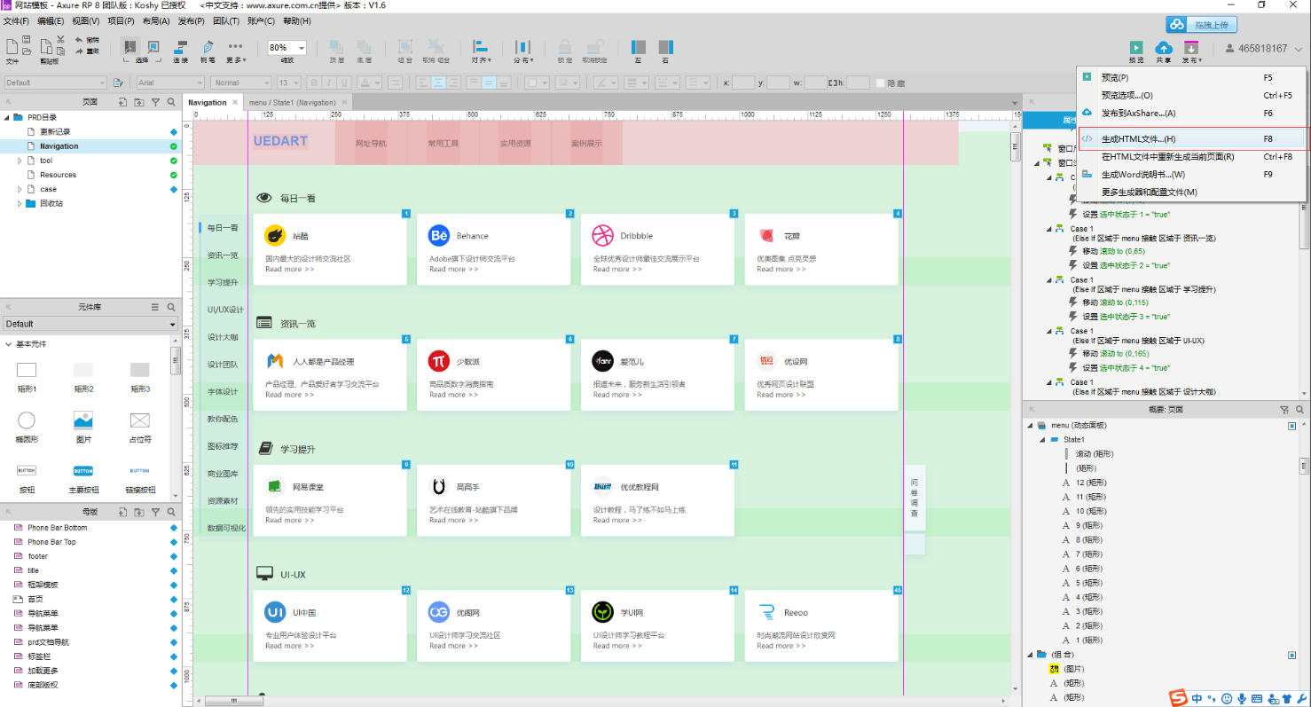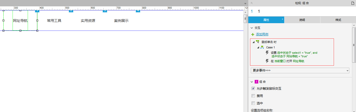 导航布局如下,采用了顶部导航的方式,设置了动态面板并将此转化成母版用于多个页面