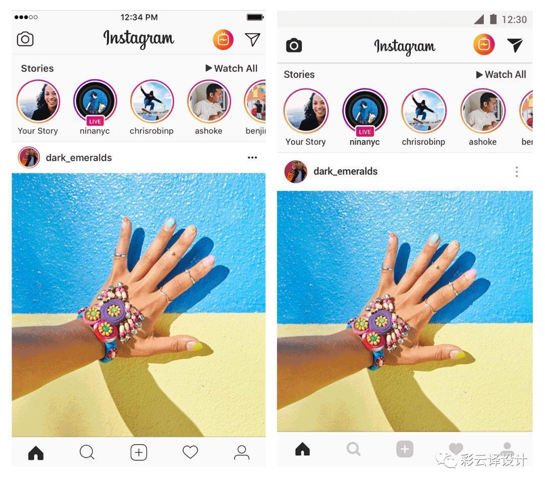 左边是iOS版的Instagram,右边是Android的Instagram