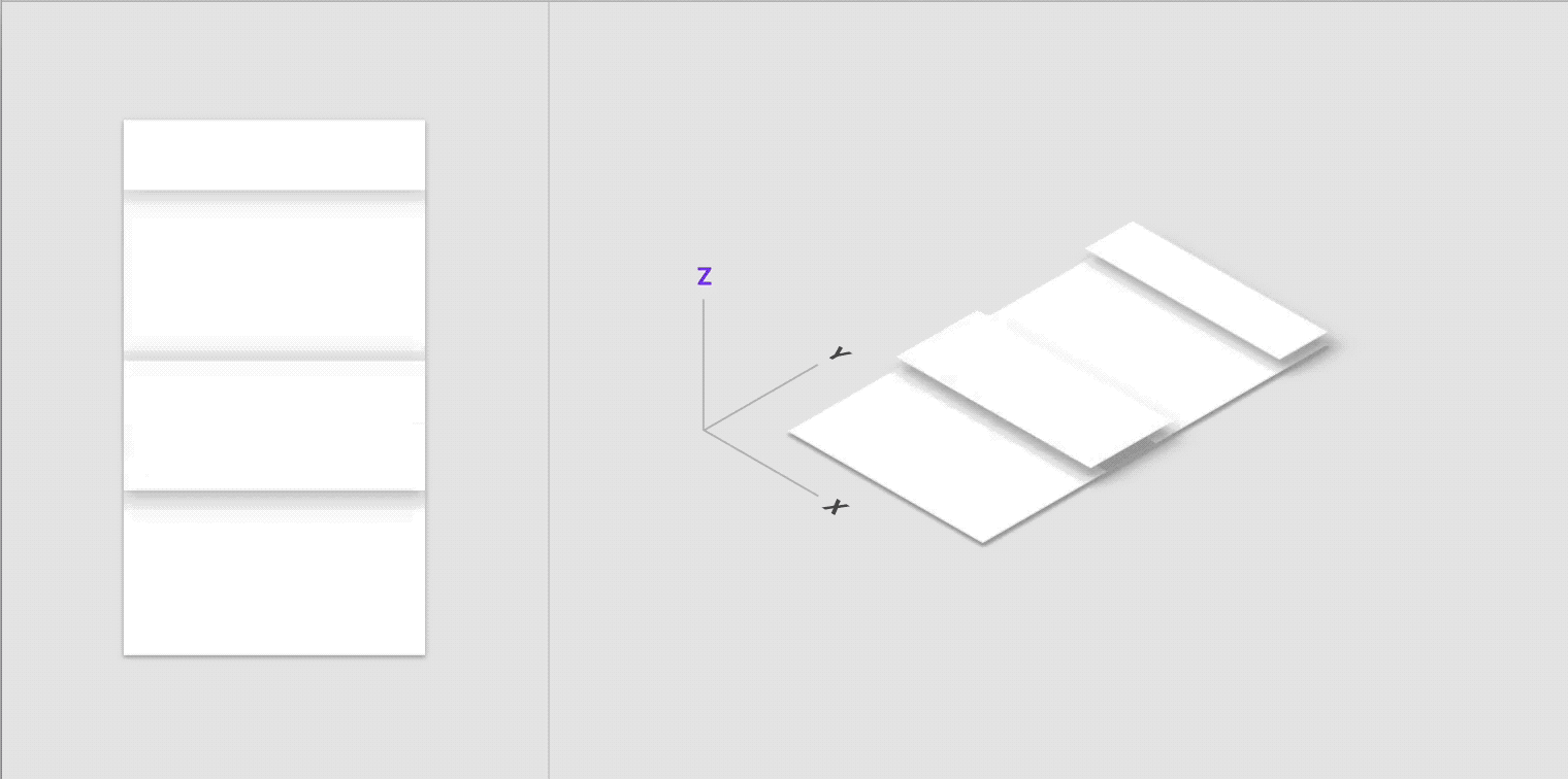在父级界面上,嵌入的子元素会在点击时抬起并在适当的位置展开。将过渡的重点放在子界面上,明确子父级之间的关系。