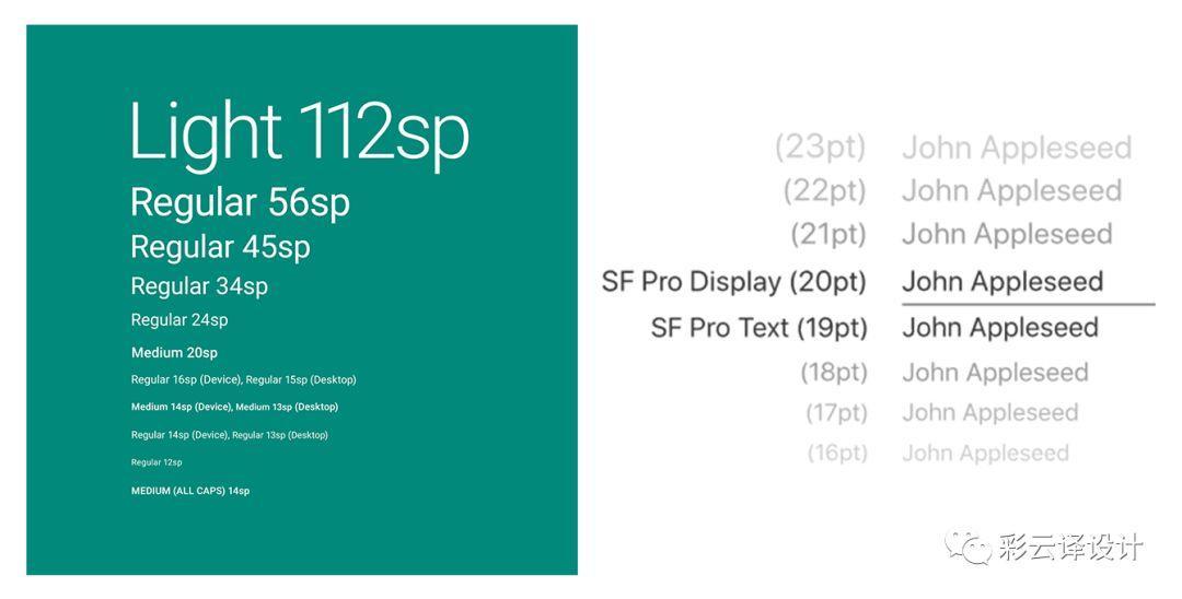 iOS的系统默认字体是San Francisco而 Android系统默认字体则是Roboto。Noto 是能在Android的所有界面中都适用的字体,包括那些不支持Roboto字体的语种。正是因为有差异,所以需要密切关注不同平台的排版和布局规范。