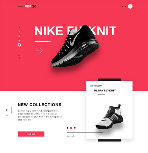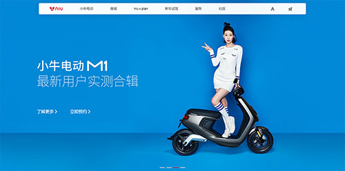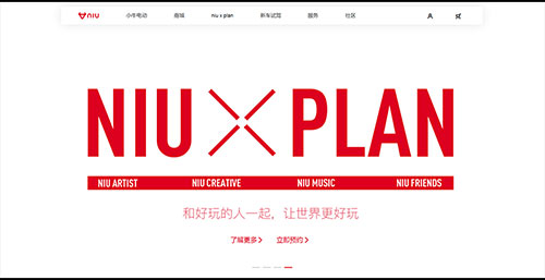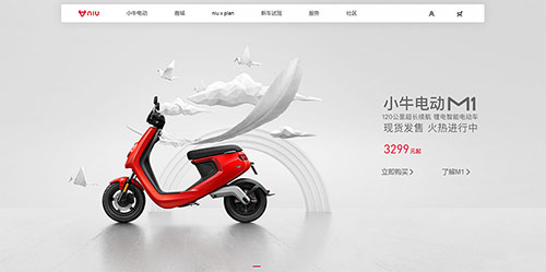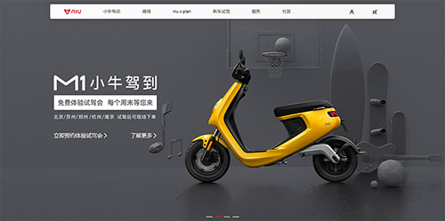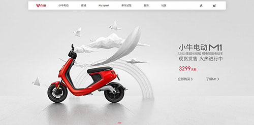 耐克和小牛电动车的页面设计的颜色选择都是使用了这个方法,并且小牛为是让画面不单调,背景使用了素色黑白灰的一些图形元素,这样既让画面丰富起来又不会使颜色过多而显得杂乱。