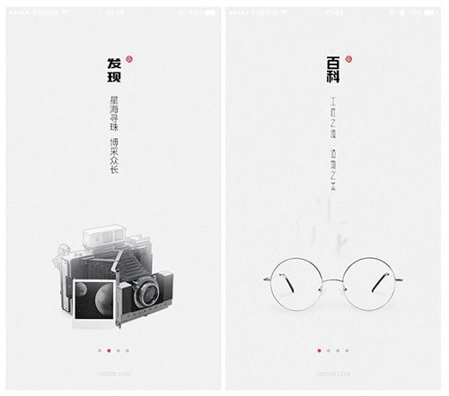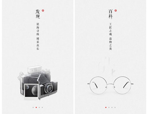 上面的两张图是“什么值得买”的闪屏页面,我们来仔细观察一下眼镜、相机与字体(文案)的关系。眼镜和相机的款式都是非常复古的,有种民国时代的感觉,因此设计师选用了一种仿古字体来配合图案,给人非常统一的感觉,配上精彩的文案就会给人一个民国时期的场景,这也可以叫带入感。如果我们把图中的字体换成非常现代的艺术字会怎么样?