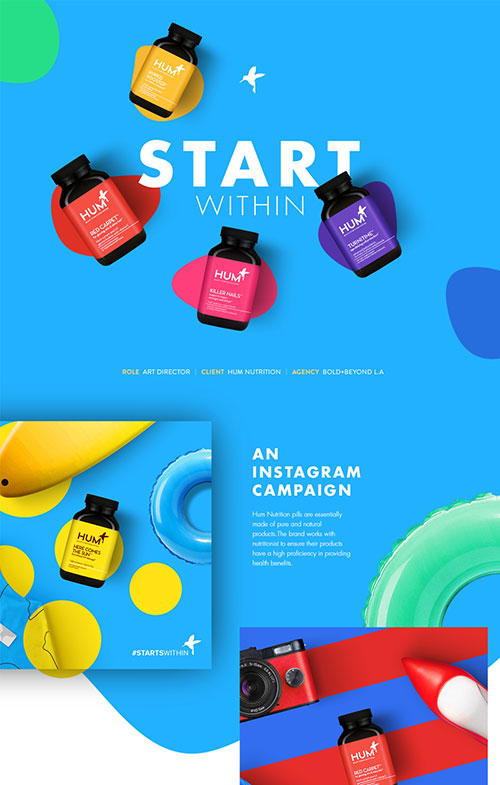 通过上面的案例我们发现,这些设计师所用的颜色都不会超过3种,而做为极简设计有时候只使用2种颜色,甚至只用黑白灰的变化来进行设计。