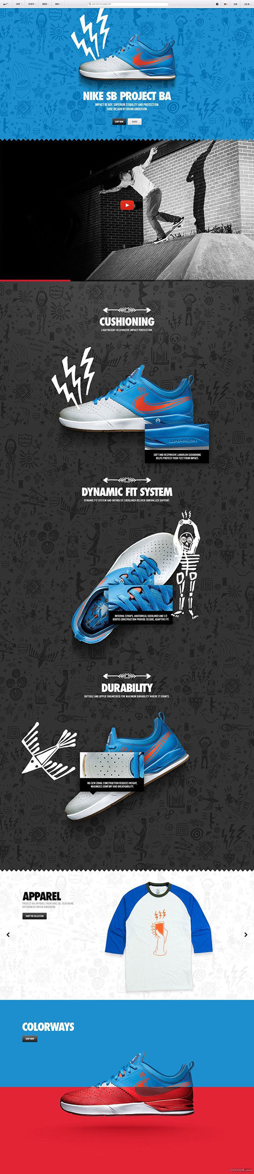 耐克的设计同样是采用这个方法,一般来说厂商想要特意退爆款会选择一种爆款的颜色或配色,而耐克这样设计的页面也是更好的展示了这个商品的独特的特点,让人们在任何地方看到这种颜色都会回想起耐克的这款鞋。