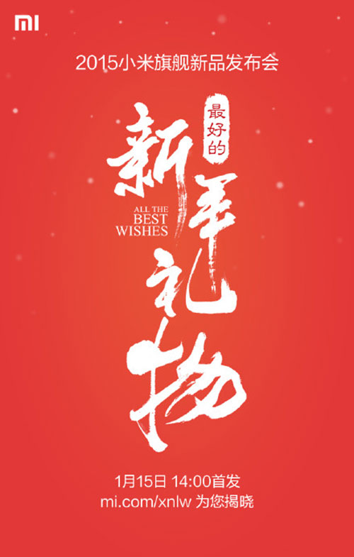 小米2015年的新品发布会海报也采用了中间对齐的形式,让关看者很容易的就聚焦到中间“新年礼物”的重要信息上。