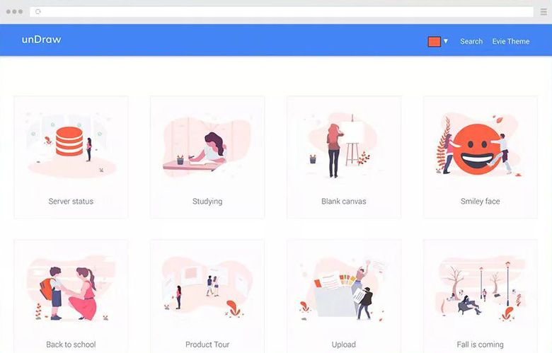 这个平台是比较有名气的,很多素材网都会收录推荐。特点是他们提供了一系列免费的插画素材库。如果你自己曾经动手过画插画,就知道有创意的插画有多难画好,价值连城。