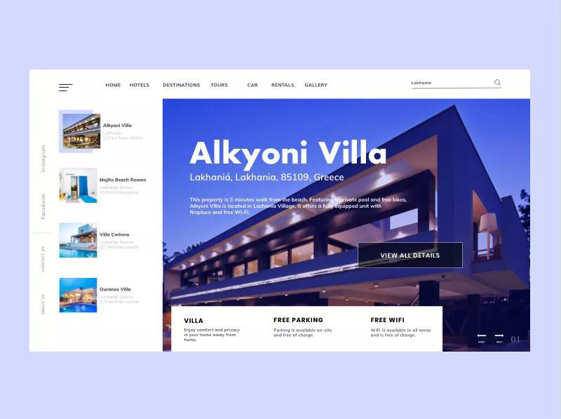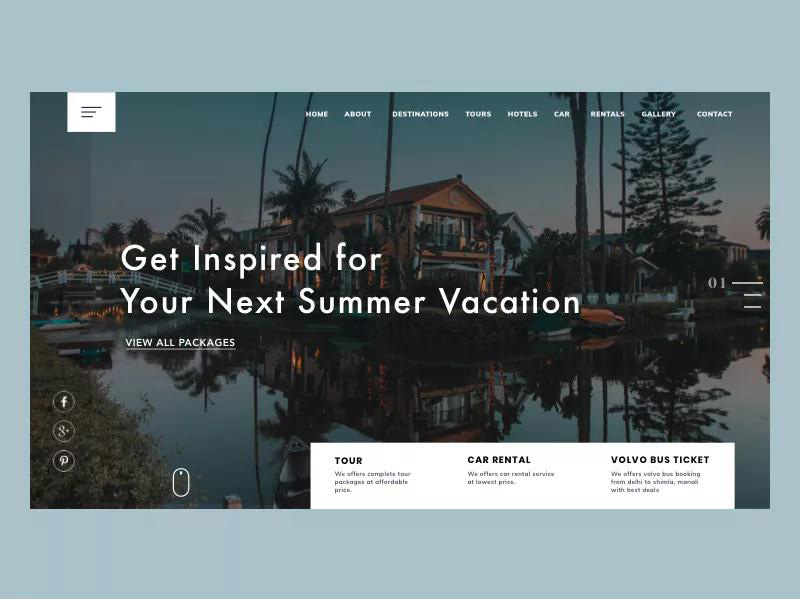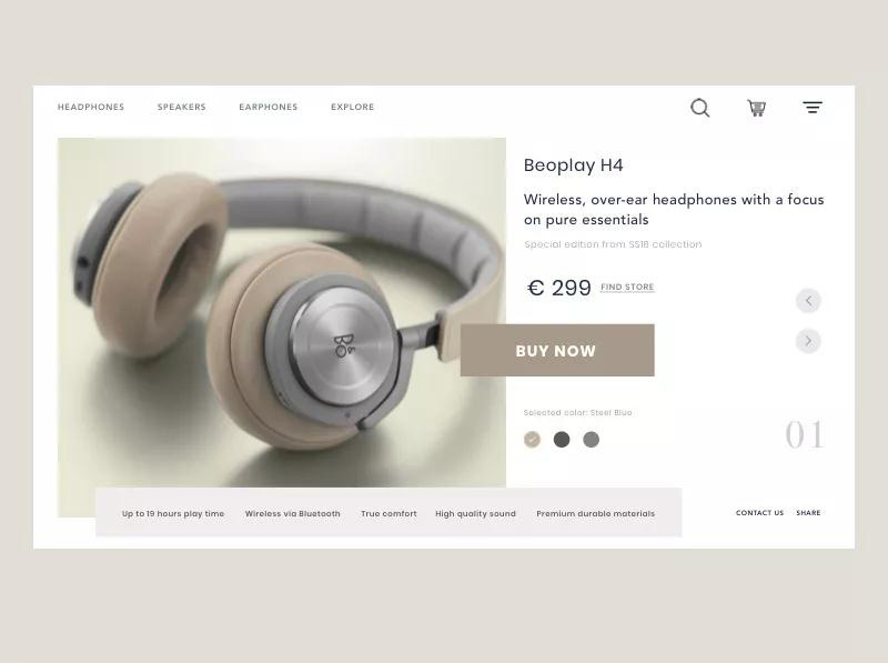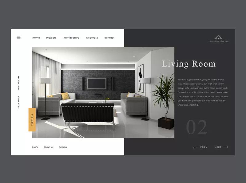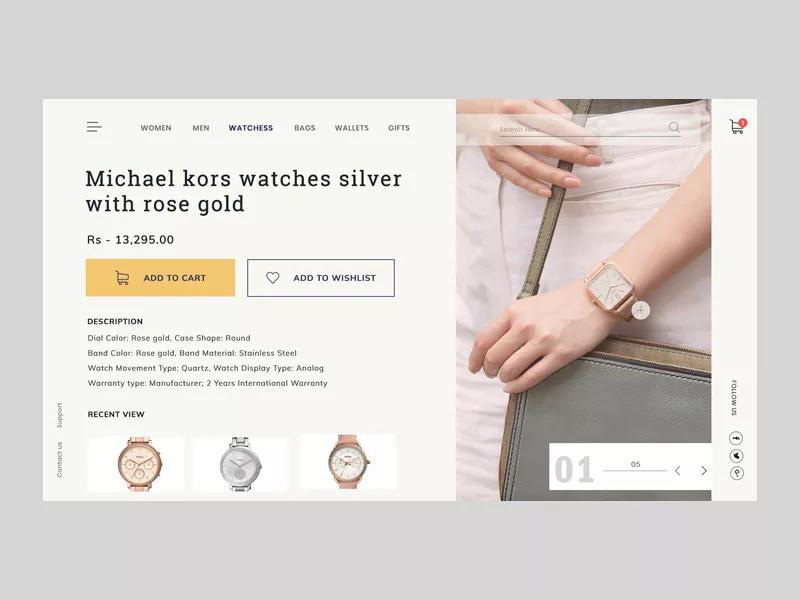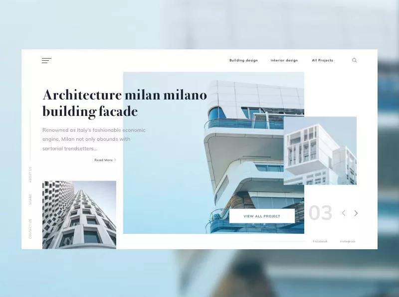 当然我们也见过右文左图的布局,不管怎么变化,深色区域总是优先于文本区域。此案例是将文本和交互元素集中放置在左侧,将文本为主的信息整合到一起。而图片则以轮播图的形式房子右侧,图片的上下贴近边缘营造出通透感。整体布局简约,图文元素泾渭分明,显得整齐而清晰。