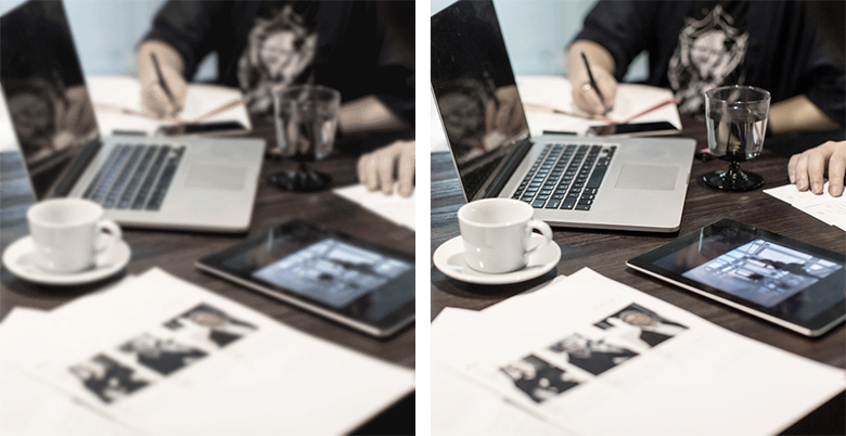 左侧:降级图片。右侧:正确的分辨率